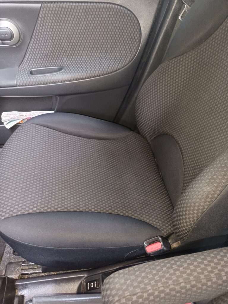Na koniec przeszedłem do auta – pranie foteli w Nissan Note. Tapicerka w samochodzie zbiera zabrudzenia w ekspresowym tempie: kurz, kawa, słodkie napoje, ślady po codziennym użytkowaniu.